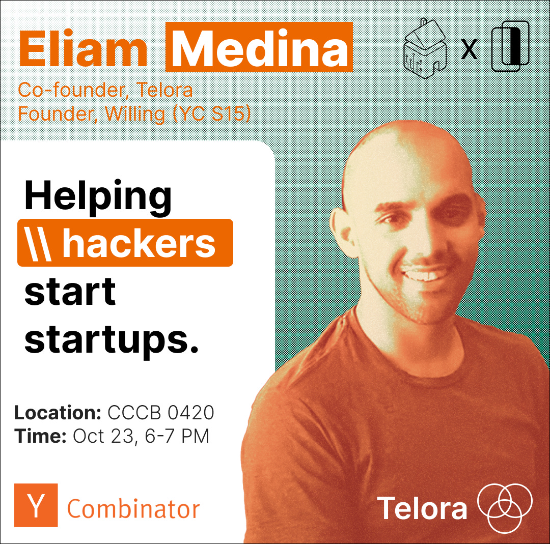 Join us this Wednesday for a fireside chat with Eliam Medina, founder of Telora, the fellowship for ambitious college students looking to build startups.